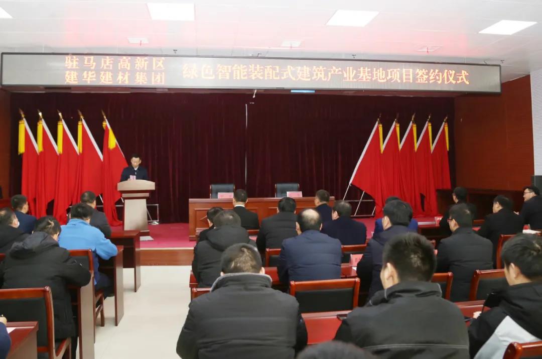 歲末添新彩。12月28日,建華建材集團與駐馬店高新區(qū)管委會舉行綠色智能裝配式建筑產(chǎn)業(yè)基地項目簽約儀式。駐馬店高新區(qū)管委會黨委書記、管委會主任李勇,黨委副書記魏俊國,管委會副主任王勇衛(wèi),區(qū)紀工委書記晏國兵;建華建材集團總裁助理兼投資發(fā)展辦公室主任汪峰,中原區(qū)域總經(jīng)理劉勇,投資發(fā)展副總監(jiān)楊元等領導出席了簽約儀式。