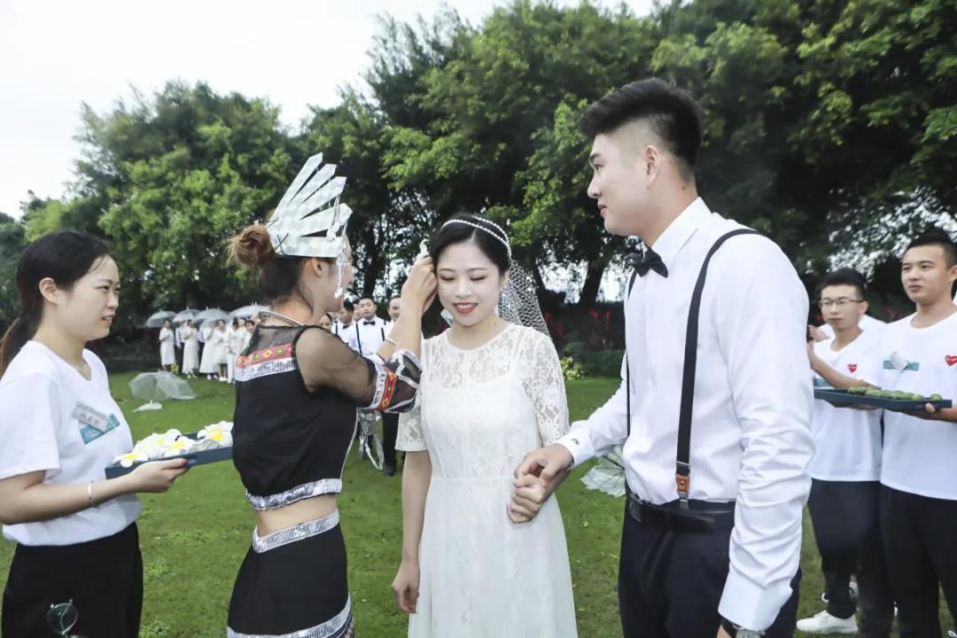 上午9點08分,30對新人在別具風情的黎族歡迎儀式中開啟了浪漫的求婚之旅,熱情歡快的竹竿舞、青春洋溢的快閃舞蹈,將現(xiàn)場歡樂氣氛推向高潮。
